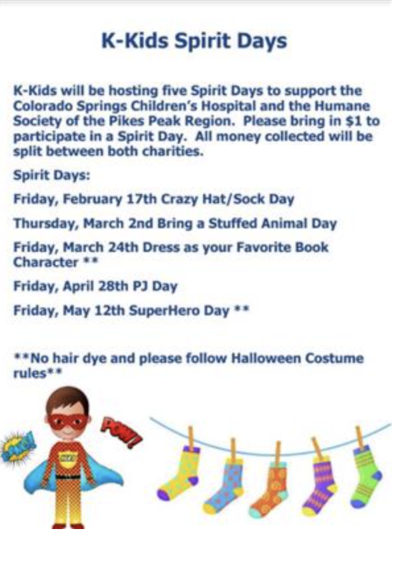 Check out our flyer here for K-Kids Spirit Days